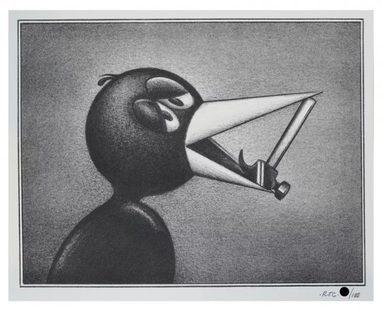 Ryan Travis Christian은 그의 어둡고 재밌는 그림과 흑연 드로잉에서 빈티지 애니메이션과 시카고 이미지스트 의 미학을 재해석하며 , 모두 회색조로 표현합니다. 이 작가는 시카고 교외에서 자란 것이 종종 영감을 줍니다. Christian은 가정의 진부함을 초현실주의, 풍자, 위험의 장소로 재구성합니다. 그는 뉴욕, 로스앤젤레스, 런던, 파리, 베를린에서 전시를 했으며 웹사이트를 통해 번창하는 상품 시장을 운영합니다. Christian은 알아볼 수 있는 만화 미학과 기이한 이미지, 폭력적인 주제를 결합하여 지친 미국 신화를 풀어냅니다.